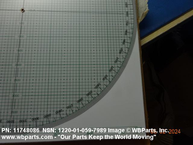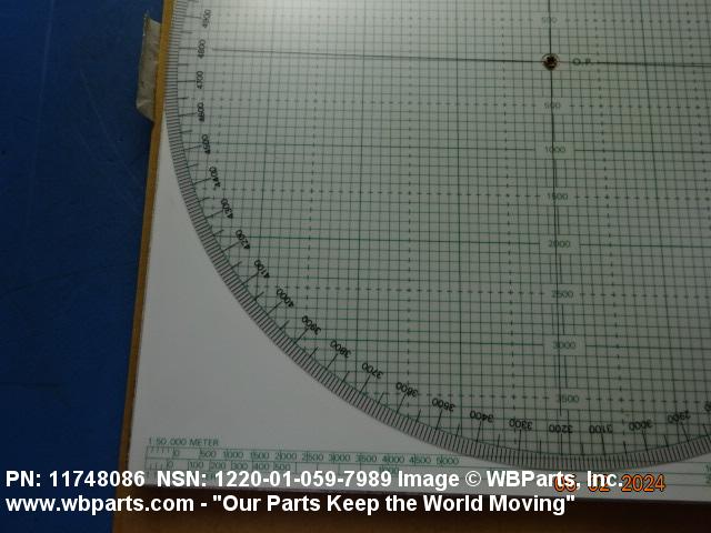 1220-01-059-7989 A specifically designed, hand held device, with a plane surface inscribed with mathematical data, and a pivoted rotating disk inscribed with millimeter scales around its periphery. It is used to determine the unknown distance of a target in relation to the known positions of the observer and the gun location.