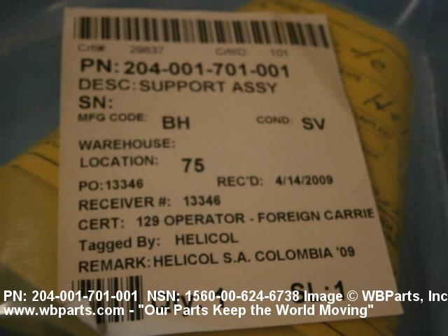 Part Alternates: 204001701001, 204-001-701-001, 2040017011, 204-001-701-1, 1560-00-624-6738, 00-624-6738, 1560006246738, 006246738