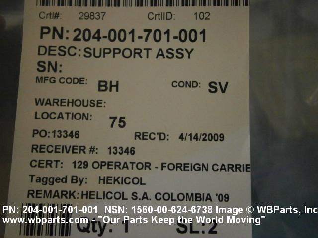 NSN 1560-00-624-6738 204001701001, 204-001-701-001, 2040017011