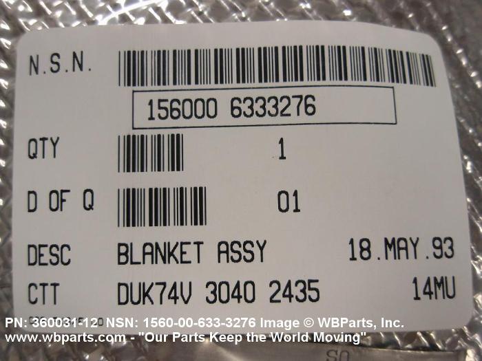 NSN 1560-00-633-3276 12-21527-20, 36003112, 360031-12
