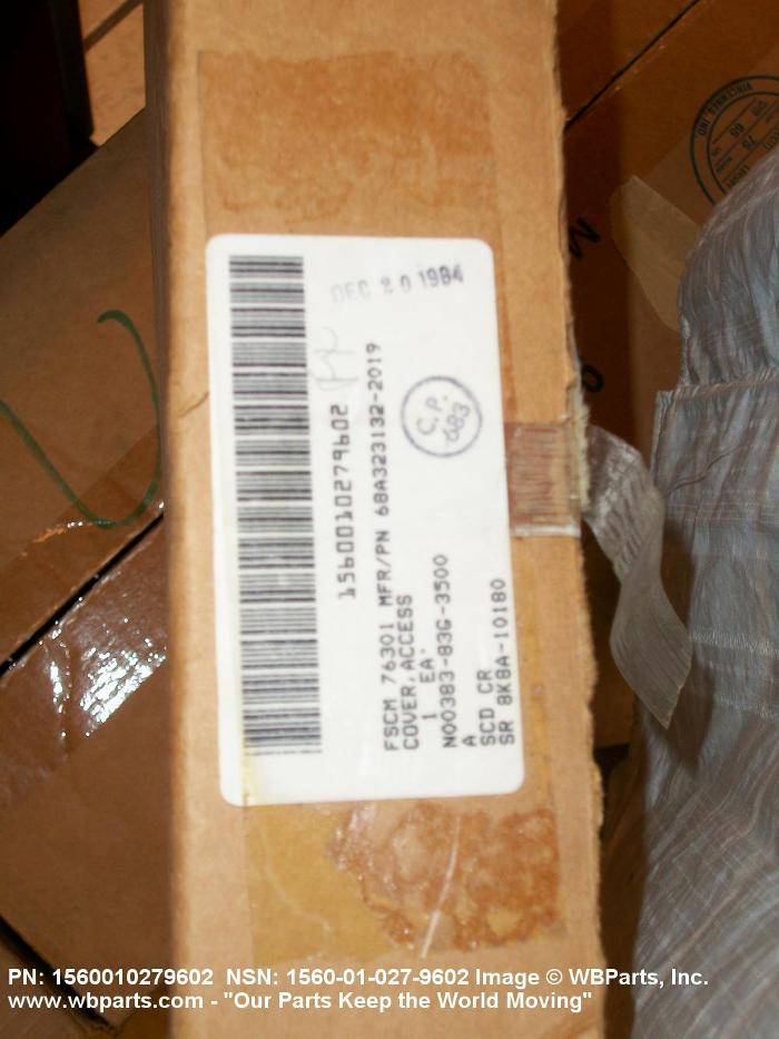 1560-01-027-9602 A rigid or flexible item of various shapes attached to a structure for the purpose of providing access for inspection, service, replacement of components and/or adjustments or mounting operations. It is designed to be attached by means of bolt holes, slots, mounting ears, tabs, and the like. To permit access, the mounted cover requires partial or complete removal. It may include an observation window. For items permanently attached by hinges and the like, see DOOR, ACCESS (as modified). Excludes all covers not specifically designed to provide access for the purposes listed above.20310050018Guns, through 30mm2590000053400020Hardware, Commercial