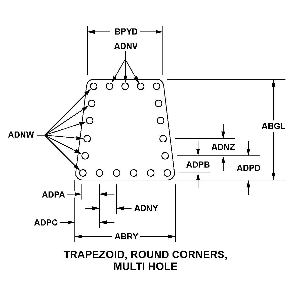 | PERIPHERAL SHAPE STYLE | 130 TRAPEZOID, ROUND CORNERS, MULTI HOLE |