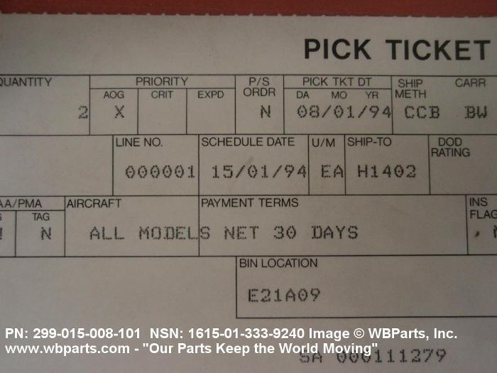 Part Alternates: 299015008101, 299-015-008-101, 1615-01-333-9240, 01-333-9240, 1615013339240, 013339240