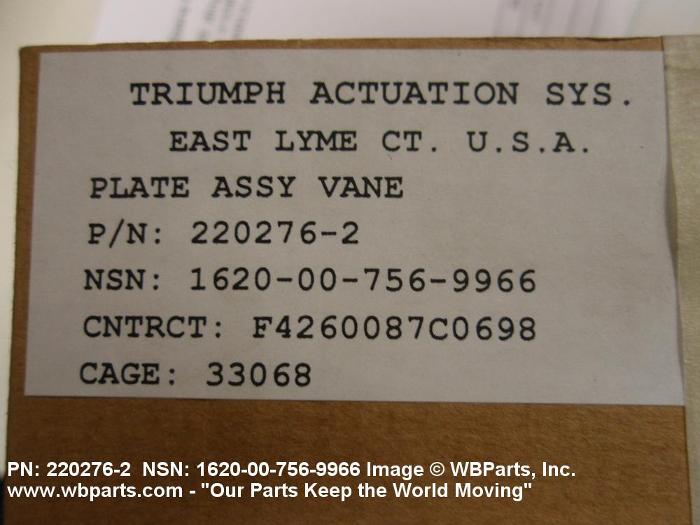Part Alternates: 2202762, 220276-2, 1620-00-756-9966, 00-756-9966, 1620007569966, 007569966