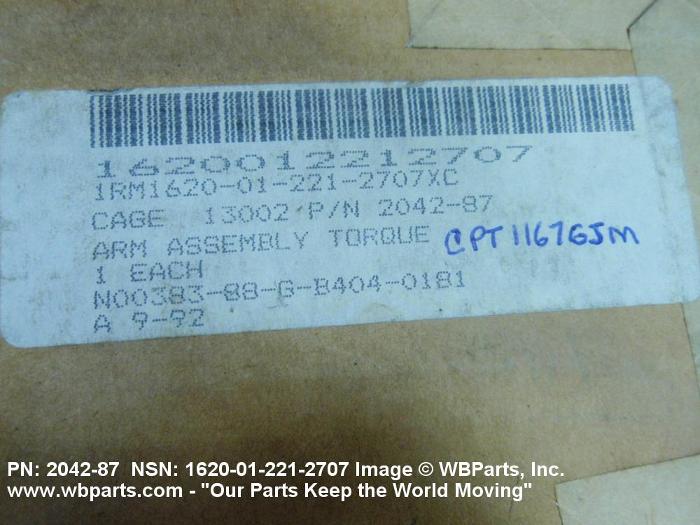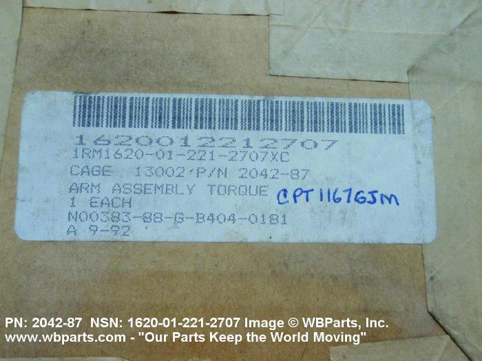 Part Alternates: 204287, 2042-87, 1620-01-221-2707, 01-221-2707, 1620012212707, 012212707