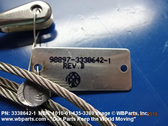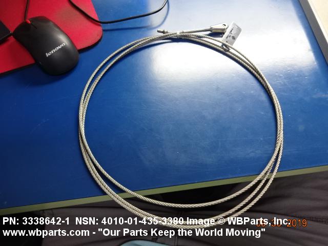 1640-01-435-3380 An assembly consisting of wire rope, with terminal attachment(s) and/or end loop(s), in a continuous run from end to end. (If without attachments, one end must terminate in a loop.) It may contain one or more intermediate and/or end attachments such as sliding or fixed ring(s), hook(s), or the like. For items specifically designed for aviation, see WIRE ROPE ASSEMBLY, SINGLE LEG, AVIATION. Excludes CONTROL ASSEMBLY, PUSH-PULL.