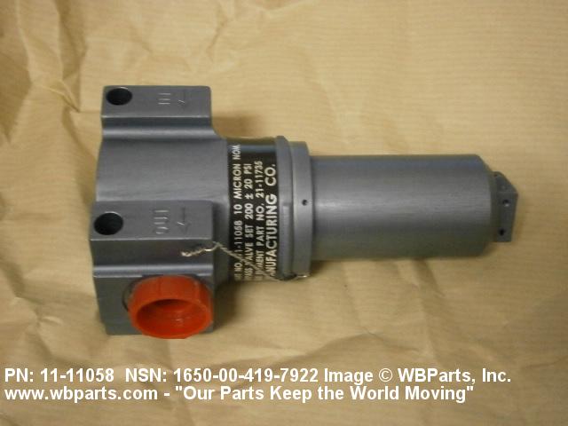 1650-00-419-7922 A filter having inlet and outlet connections and designed to be connected in a pipe, tube or hose line. For spin-on, base-mounted filtering devices with integral outer casings, see FILTER ELEMENT, FLUID. Excludes AIR CONDITIONER.21516500058Aircraft Hydraulic, Vacuum, and De-icing System Components16600062Aircraft Air Conditioning, Heating, and Pressurizing Equipment25300060Vehicular Brake, Steering, Axle, Wheel, and Track Components29100042Engine Fuel System Components, Nonaircraft29150064Engine Fuel System Components, Aircraft and Missile Prime Movers29400064Engine Air and Oil Filters, Strainers, and Cleaners, Nonaircraft29450059Engine Air and Oil Filters, Cleaners, Aircraft Prime Moving41300045Refrigeration and Air Conditioning Components43300057Centrifugals, Separators, and Pressure and Vacuum Filters4930000063500059Miscellaneous Alarm, Signal, and Security Detection Systems65150057Medical and Surgical Instruments, Equipment, and Supplies65300053Hospital Furniture, Equipment, Utensils, and Supplies65400047Ophthalmic Instruments, Equipment, and Supplies66300029Chemical Analysis Instruments