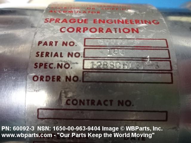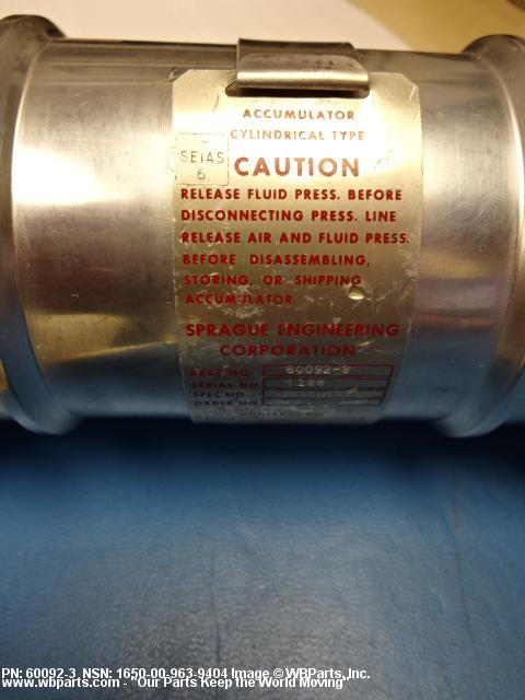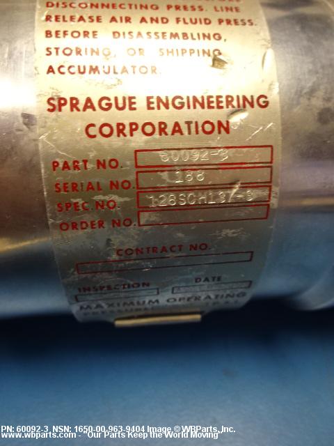 1650-00-963-9404 An accumulator in which liquids are stored under pressure for momentary energy in a hydraulic system. Excludes ACCUMULATOR, HYDRAULIC, SQUIB ACTUATED.20716500058Aircraft Hydraulic, Vacuum, and De-icing System Components20900039Miscellaneous Ship and Marine Equipment25300060Vehicular Brake, Steering, Axle, Wheel, and Track Components25900034Miscellaneous Vehicular Components30400042Miscellaneous Power Transmission Equipment44700016Nuclear Reactors49200058Aircraft Maintenance and Repair Shop Specialized Equipment