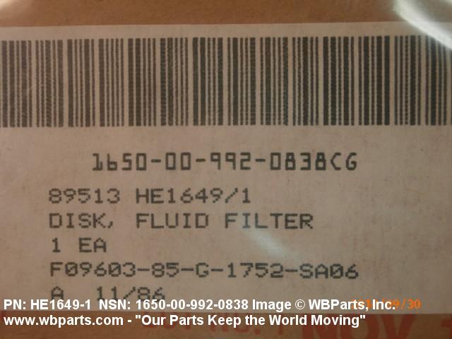 NSN 1650-00-992-0838 HE16491, HE1649-1, 00-992-0838