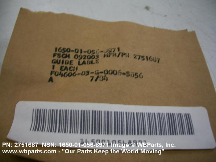Part Alternates: 2751687, 1650-01-056-8971, 01-056-8971, 1650010568971, 010568971