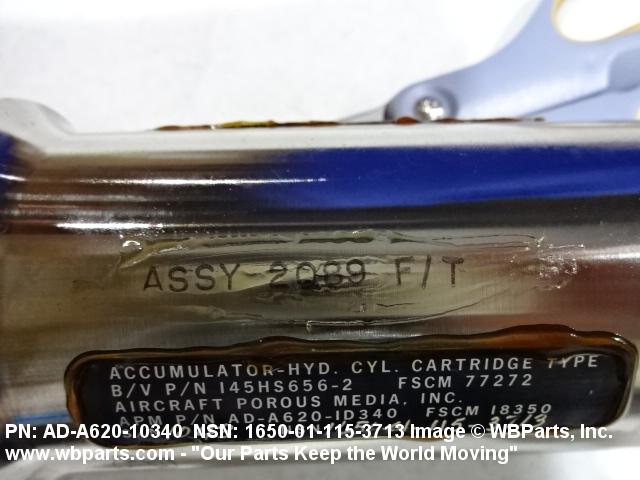 1650-01-115-3713 An accumulator in which liquids are stored under pressure for momentary energy in a hydraulic system. Excludes ACCUMULATOR, HYDRAULIC, SQUIB ACTUATED.20716500058Aircraft Hydraulic, Vacuum, and De-icing System Components20900039Miscellaneous Ship and Marine Equipment25300060Vehicular Brake, Steering, Axle, Wheel, and Track Components25900034Miscellaneous Vehicular Components30400042Miscellaneous Power Transmission Equipment44700016Nuclear Reactors49200058Aircraft Maintenance and Repair Shop Specialized Equipment