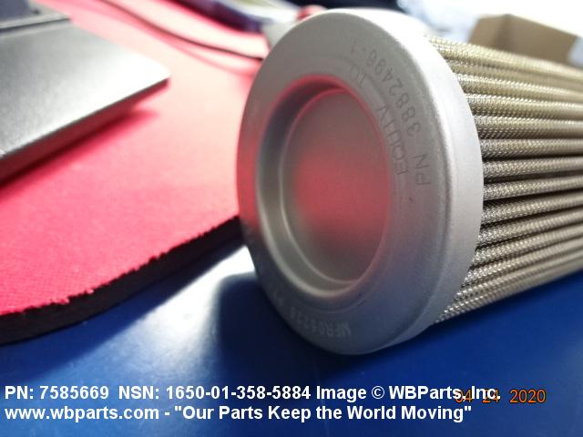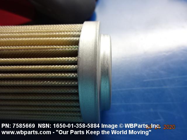 1650-01-358-5884 A replaceable device designed to remove solid particles from fluids ranging in density from heavy liquids to gases. The removal of particles is accomplished by porous material (metallic or non-metallic), stacked disks, wound wire, or the like, constructed so the fluid can flow through the device while the solid particles are retained. It may be designed to fit into a FILTER, FLUID (or similar cavity), or it may have an integral outer casing and mounting facilities and be designed to connect directly to an engine, compressor, or the like. The degree of removal of particles must be nominally rated at less than 50 microns or absolutely rated at less than 75 microns. Excludes FILTER ELEMENT, AIR CONDITIONING. See also STRAINER ELEMENT, SEDIMENT.20916500058Aircraft Hydraulic, Vacuum, and De-icing System Components29100042Engine Fuel System Components, Nonaircraft29150064Engine Fuel System Components, Aircraft and Missile Prime Movers29400064Engine Air and Oil Filters, Strainers, and Cleaners, Nonaircraft29450059Engine Air and Oil Filters, Cleaners, Aircraft Prime Moving43300057Centrifugals, Separators, and Pressure and Vacuum Filters5999000065300053Hospital Furniture, Equipment, Utensils, and Supplies66300029Chemical Analysis Instruments