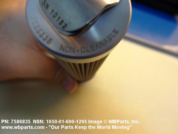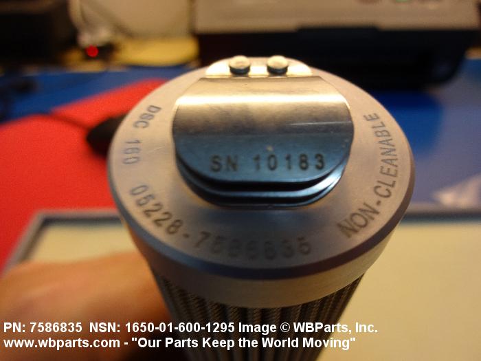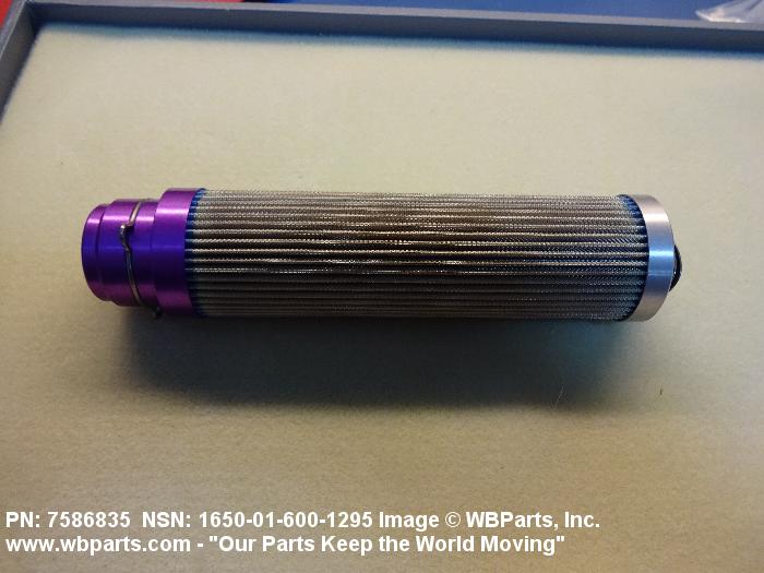 1650-01-600-1295 A replaceable device designed to remove solid particles from fluids ranging in density from heavy liquids to gases. The removal of particles is accomplished by porous material (metallic or non-metallic), stacked disks, wound wire, or the like, constructed so the fluid can flow through the device while the solid particles are retained. It may be designed to fit into a FILTER, FLUID (or similar cavity), or it may have an integral outer casing and mounting facilities and be designed to connect directly to an engine, compressor, or the like. The degree of removal of particles must be nominally rated at less than 50 microns or absolutely rated at less than 75 microns. Excludes FILTER ELEMENT, AIR CONDITIONING. See also STRAINER ELEMENT, SEDIMENT.20916500058Aircraft Hydraulic, Vacuum, and De-icing System Components29100042Engine Fuel System Components, Nonaircraft29150064Engine Fuel System Components, Aircraft and Missile Prime Movers29400064Engine Air and Oil Filters, Strainers, and Cleaners, Nonaircraft29450059Engine Air and Oil Filters, Cleaners, Aircraft Prime Moving43300057Centrifugals, Separators, and Pressure and Vacuum Filters5999000065300053Hospital Furniture, Equipment, Utensils, and Supplies66300029Chemical Analysis Instruments