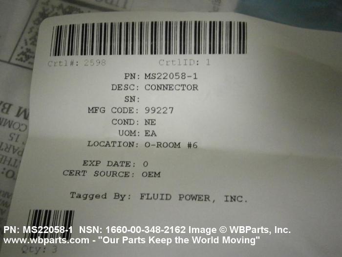 | DEFINITIVE GOVERNMENT SPEC/STD REFERENCE | MS22058-1 |
