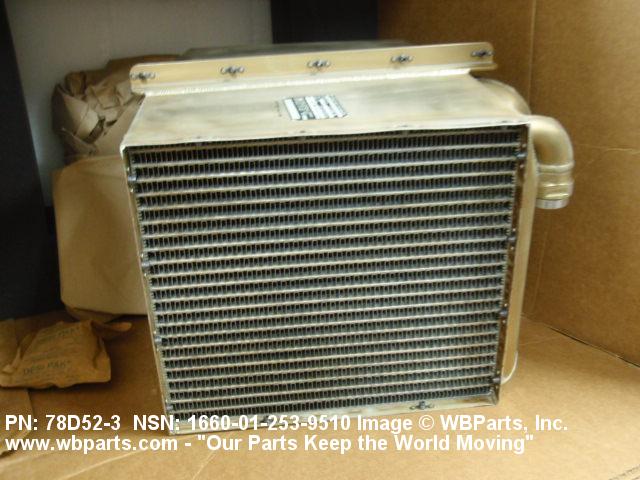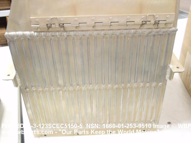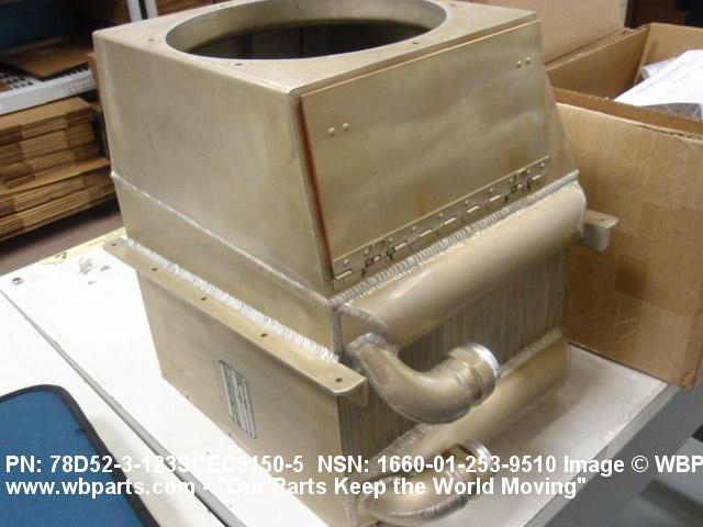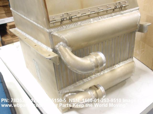 1660-01-253-9510 A heat transfer device designed to lower compressed air temperature to an acceptable level by passing it through tubes and flowing ducted ram air over the tubes, heat of the compressed air is transferred to the ram air reducing the temperature. Consists of a sheet metal housing with ram air connection(s) with or without ducts, a tubular type core, inlet and outlet ports. May contain a shutoff valve. Normally used in aircraft air conditioning and/or air induction systems.