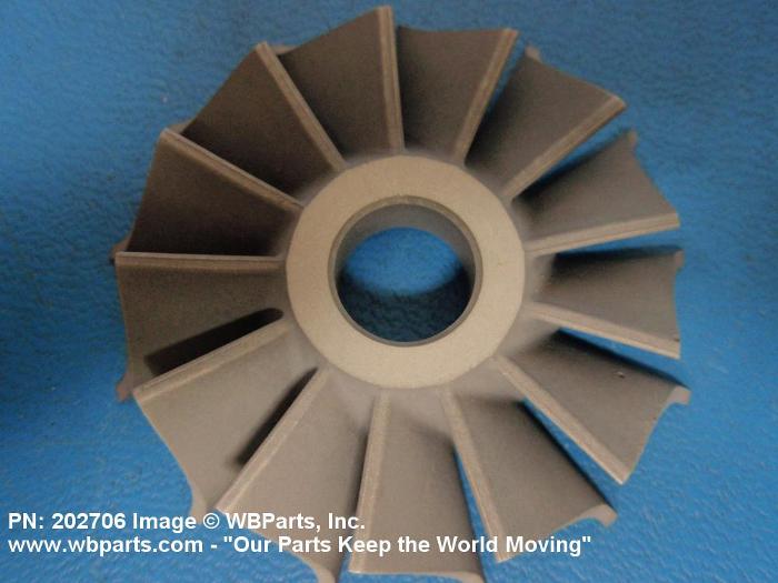 1660-01-443-9366 An item consisting of blades, vanes or paddles equally spaced around the periphery or face of a hub, rotor or wheel. It is turbine wheel or shaft driven. Designed primarily as a means for absorbing the energy and to act as a governing force for a turbine wheel. Also aids in drawing ram air through a heat exchanger. May be used to compress the air required to drive the turbine wheel. It is a rotating part of an aircraft cooling turbine.