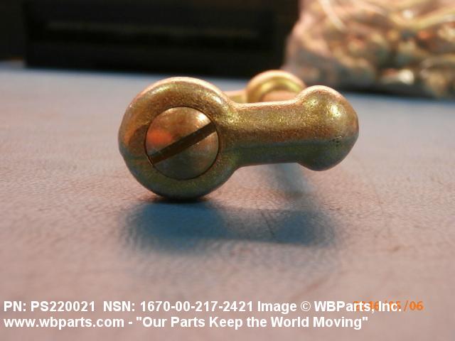 1670-00-217-2421 A metallic device used as a removeable connector for a parachute harness and canopy.