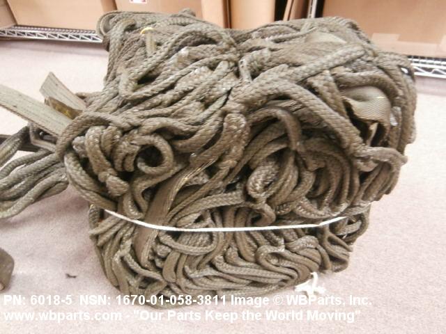 1670-01-058-3811 A net used for aircraft delivery of cargo. It may be designed to be attached to a parachute to be dropped from an aircraft; or it may be designed to be attached to a lifting-hook(s) either by a sling or by direct connection to a rotary-wing aircraft.
