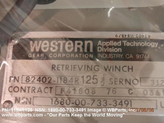 Part Alternates: 1184R125, 6957551, 695755-1, 1680-00-733-3491, 00-733-3491, 1680007333491, 007333491