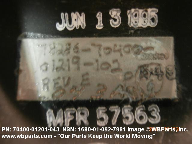 Part Alternates: 70400-01201-043, 1680-01-092-7981, 01-092-7981, 1680010927981, 7040001201043, 010927981