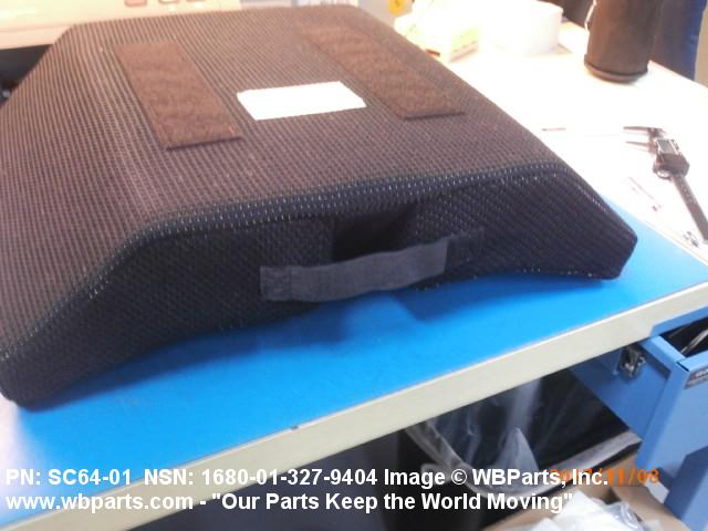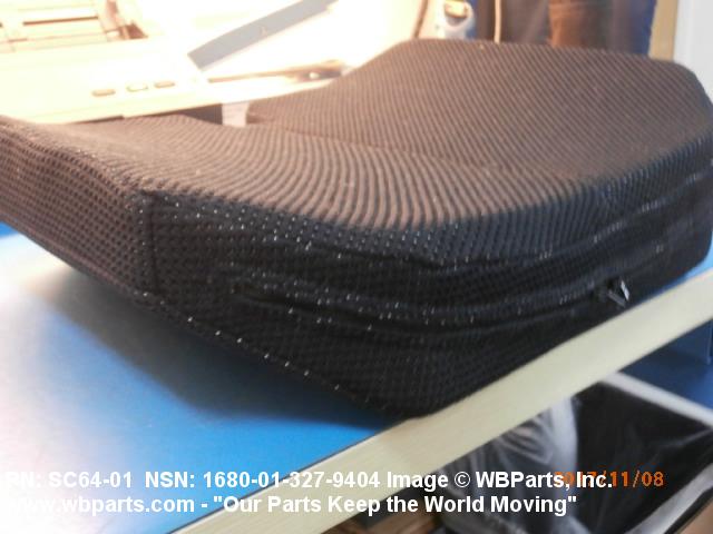 1680-01-327-9404 A molded foam rubber, one-piece, fabric-covered seating accommodation designed to upholster the bottom frame of an aircraft seat. It may include slide or snap-type fasteners for installation, seat cover removal, closure of inspection data pocket, and the like. Excludes CUSHION ASSEMBLY, SEAT AND BACK, AIRCRAFT; CUSHION, SEAT, PARACHUTE HARNESS; CUSHION, SEAT, AIRCRAFT SURVIVAL; and CUSHION, SEAT-SURVIVAL KIT, AIRCRAFT.