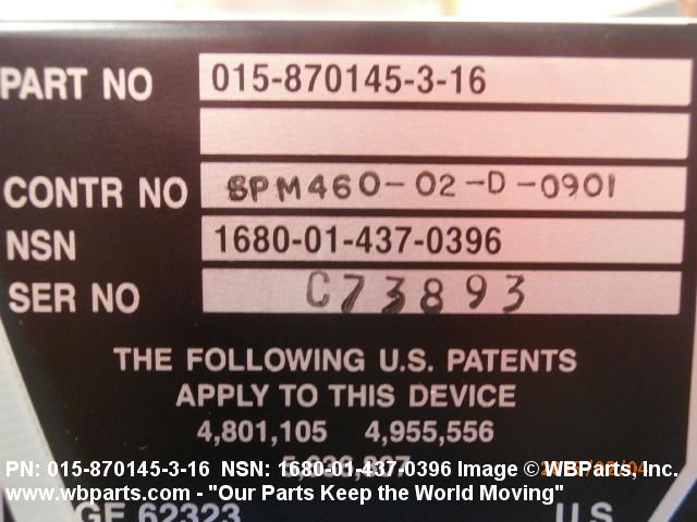 Part Alternates: 0106937, 01069371, 0106937-1, 015870145316, 015-870145-3-16, 1680-01-437-0396, 01-437-0396, 1680014370396, 014370396