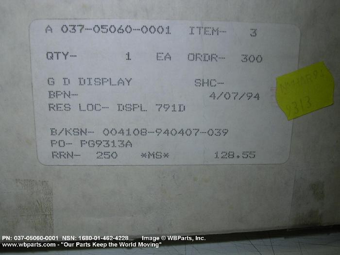 Part Alternates: 037050600001, 037-05060-0001, 1680-01-462-4228, 01-462-4228, 1680014624228, 014624228