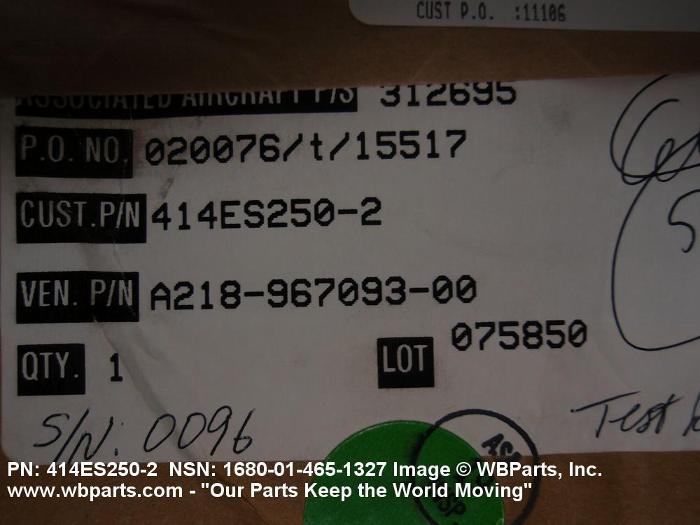 Part Alternates: A21896709300, A218-967093-00 , 414ES2502, 414ES250-2, 1680-01-465-1327, 01-465-1327, 1680014651327, 014651327