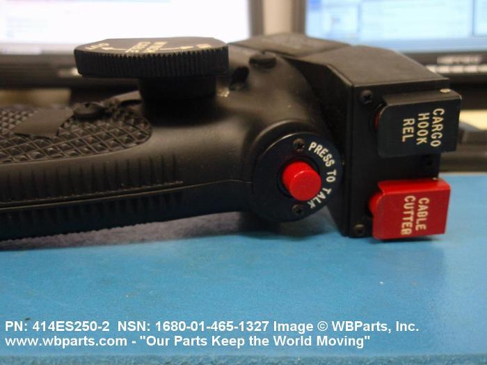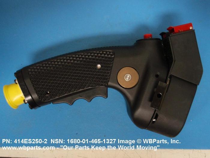 1680-01-465-1327 A hand grip, usually of pistol grip design, made of rubber, plastic or other material and designed to be mounted on an aircraft control stick to provide a formed gripping surface. It incorporates electrical controls, such as resistor(s) and/or switches for remotely actuating associated equipment, such as servos, armament, trim tabs, and the like. Excludes SWITCH, TRIGGER and other multiapplication switches.