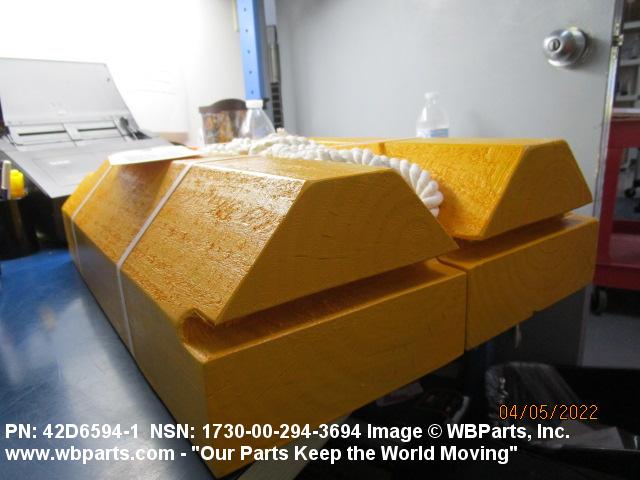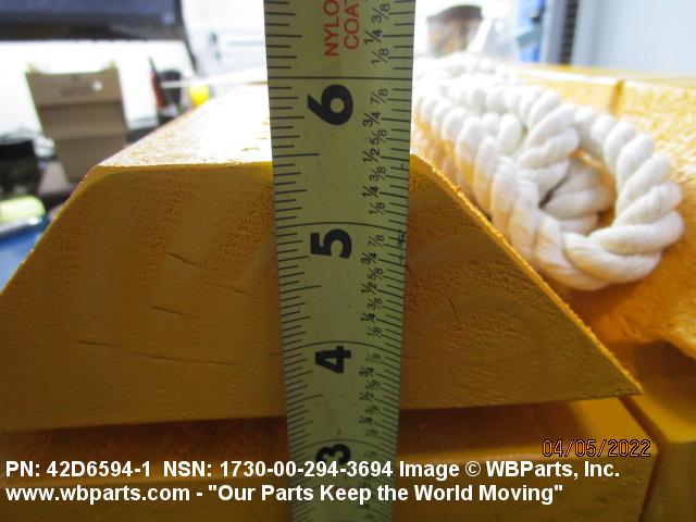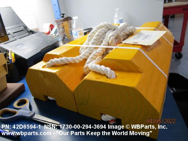 1730-00-294-3694 An item consisting of a single chock or a pair of chocks which are connected by a spreader bar, ropes, or the like. It is designed to be placed in front of, and/or behind a wheel or track to prevent movement.20217300035Aircraft Ground Servicing Equipment25400035Vehicular Furniture and Accessories