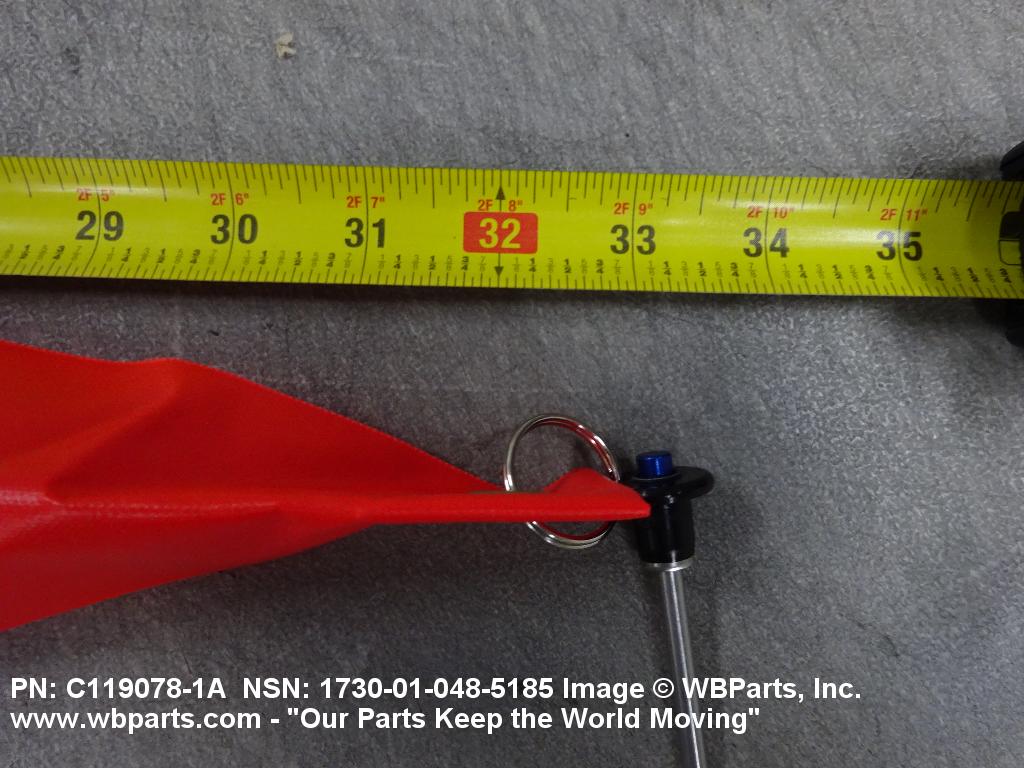 1730-01-048-5185 An item consisting of a pin/pins attached to a STREAMER,WARNING. It may be of various sizes and types and is generally a cylindrically-shaped metallic item having straight irregular contours. The item is installed in specific locations on aircraft, guided missiles, space vehicles, rockets, bombs, and mine dispensers, armament pods, and the like to prevent inadvertent operation and as a warning that certain preoperation functions are required.20317300035Aircraft Ground Servicing Equipment20900039Miscellaneous Ship and Marine Equipment25900034Miscellaneous Vehicular Components