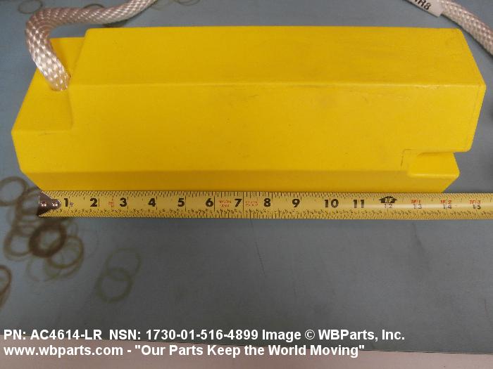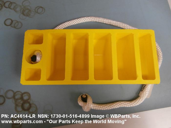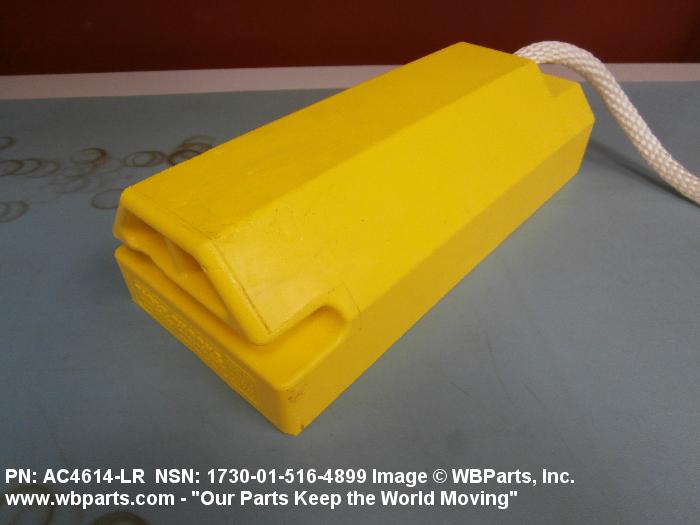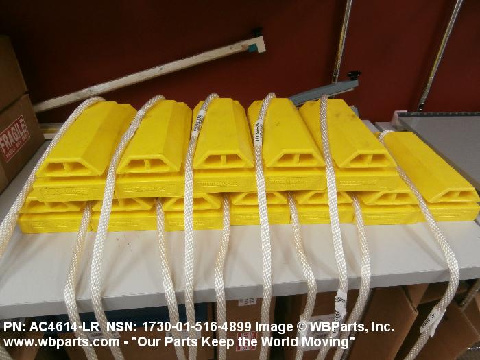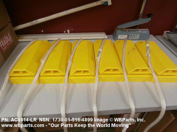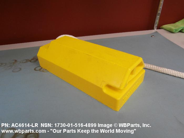 1730-01-516-4899 An item consisting of a single chock or a pair of chocks which are connected by a spreader bar, ropes, or the like. It is designed to be placed in front of, and/or behind a wheel or track to prevent movement.20217300035Aircraft Ground Servicing Equipment25400035Vehicular Furniture and Accessories