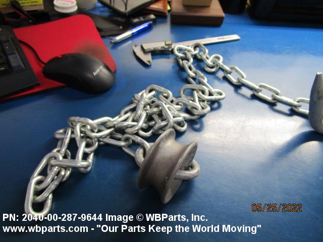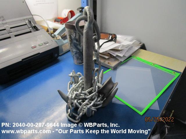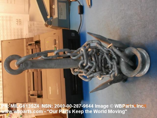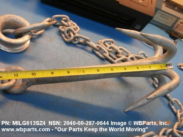 | SPECIAL FEATURES | W/6 FT OF 1/4 IN. CHAIN ATTACHED TO THE 3/4 IN. SHANK EYE BY A PEAR-SHAPED CONNECTING LINK. AN ENLARGED PEAR-SHAPED LINK IS ATTACHED TO THE OTHER END OF THE CHAIN AND FITTED W/A RD THIMBLE FOR 1-1/2 IN. CIRC ROPE |