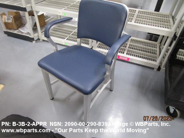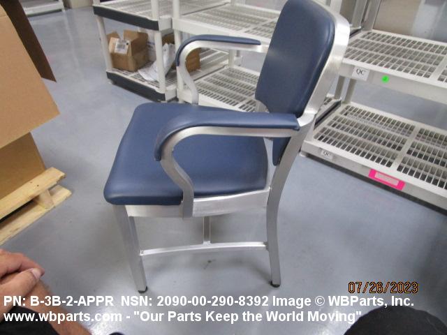 2090-00-290-8392 An item of movable furniture designed to seat one person. It has a back and may have an arm or arms. It usually has four legs, but may have various shaped bases. It is never completely upholstered, but portions may be upholstered. Excludes CHAIR, EASY; CHAIR, FOLDING; CHAIR, ROCKING; CHAIR, AVIATOR'S READY ROOM; CHAIR, ROTARY and CHAIR, HOSPITAL WARD.20420900039Miscellaneous Ship and Marine Equipment71050019Household Furniture71100016Office Furniture71950036Miscellaneous Furniture and Fixtures