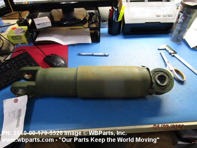 2510-00-179-5526 A damper, either frictional or hydraulic, designed to dampen the shock of suddenly applied force and/or to control spring rebound and oscillation, usually attached to the vehicle frame, body or hull and connected to an axle, spring, spring support web or pad or between suspension arms of track-laying vehicles. See also MOUNT, RESILIENT and SHOCK ABSORBER, LEVER ACTION.
