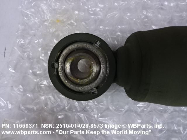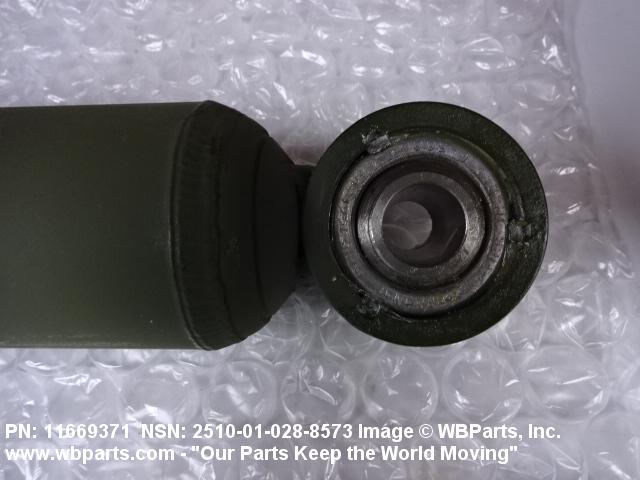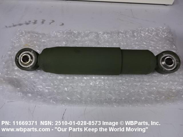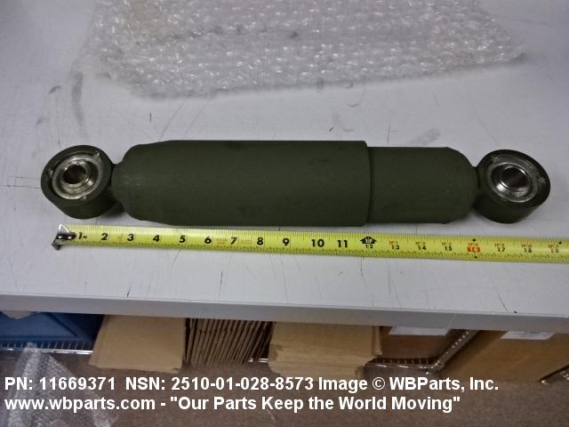 2510-01-028-8573 A damper, either frictional or hydraulic, designed to dampen the shock of suddenly applied force and/or to control spring rebound and oscillation, usually attached to the vehicle frame, body or hull and connected to an axle, spring, spring support web or pad or between suspension arms of track-laying vehicles. See also MOUNT, RESILIENT and SHOCK ABSORBER, LEVER ACTION.