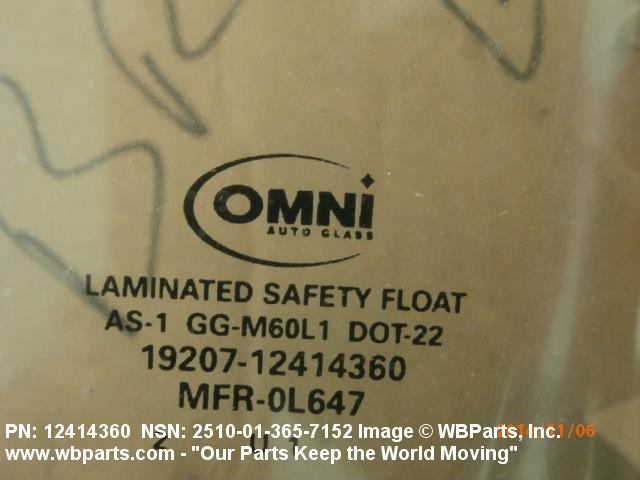 2510-01-365-7152 A single or multi-piece item(s), curved or flat, with frame(s), of transparent materiel. Designed for mounting in a vehicular body, door or the like, t o allow visibility and to shield personnel from environmental effects such as rain, dust, wind, and the like. Also includes curved windows without frames forming part of a vehicular body. Excludes GLASS,LAMINATED; GLASS,SAFETY,SINGLE PLATE; PLASTIC SHEET; GLASS SHEET.