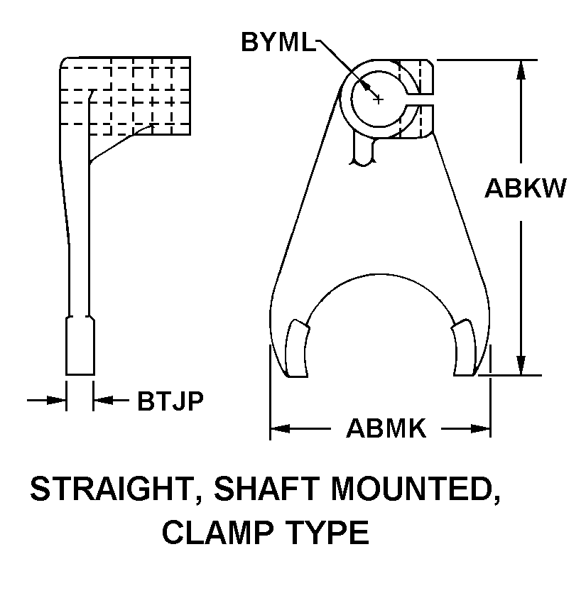 2520-00-996-0640 An item having two or more prongs which may have transverse hole(s), slot(s), dowel pin(s), pad(s), in or on the end of each prong, to provide a means to accomplish the engagement or disengagement of gear(s), shaft(s), clutch, or the like. The opposite end has facilities for a shaft, lever, or the like. This item is designed to be used on vehicular applications such as automobiles, tanks, construction equipment, and the like.