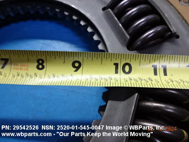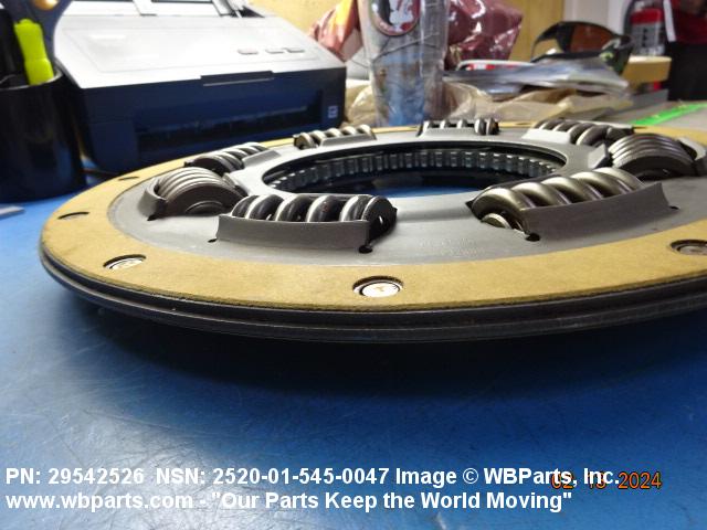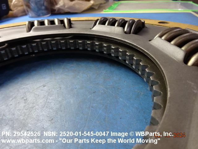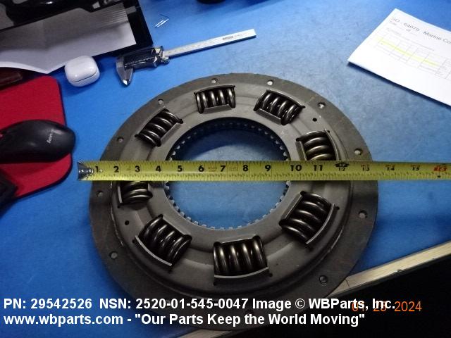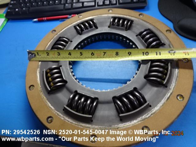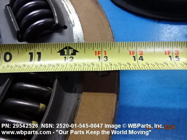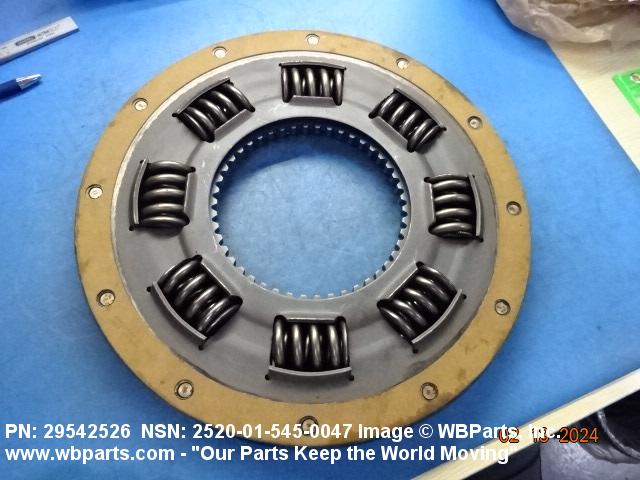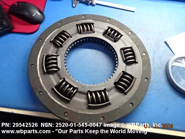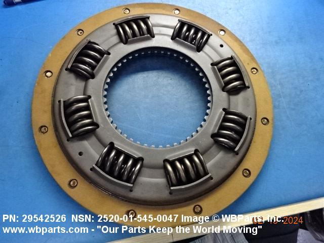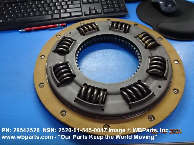 2520-01-545-0047 A solid circular disk of wire-woven lining material or ceramic and metal substance and the like, molded to one or both sides and fastened directly or indirectly to the center spline or hub, which receives and transmits motion or power by engagement with the pressure plate assembly and the flywheel or the like. Includes dry or wet type disk, and may include damper springs. This item is designed to be used on tanks, automobiles, construction equipment, and the like in conjunction with a CLUTCH ASSEMBLY, FRICTION.