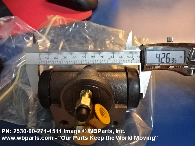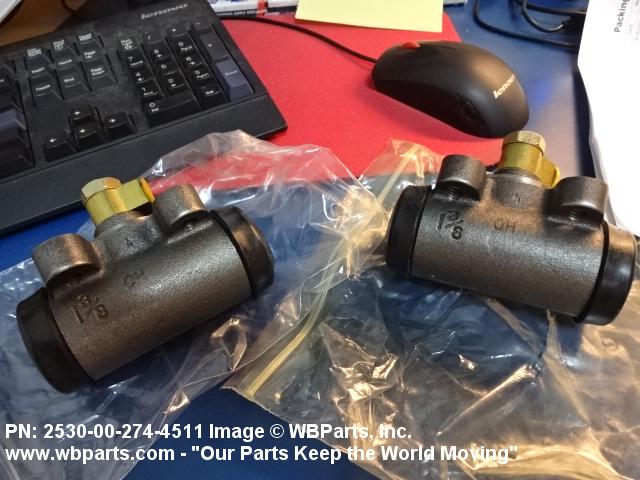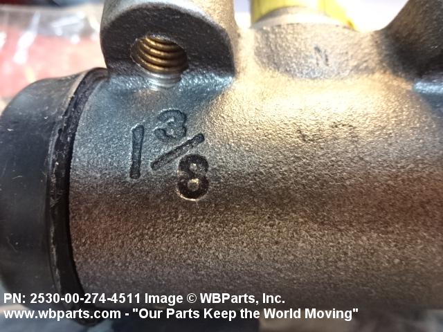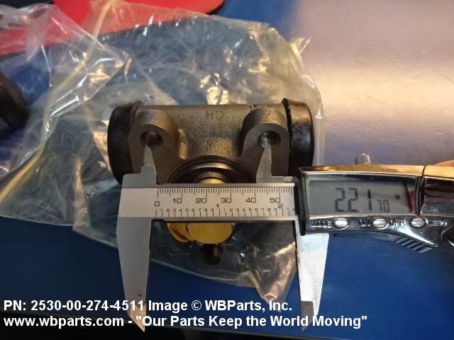 2530-00-274-4511 A device consisting of a CYLINDER, HYDRAULIC BRAKE, WHEEL with a piston(s) and other component parts which is mounted to the back plate of a wheel. It uses the flow and pressure of a fluid to create the linear motion required to operate the brake shoes of a hydraulic brake system.20216300032Aircraft Wheel and Brake Systems25300060Vehicular Brake, Steering, Axle, Wheel, and Track Components