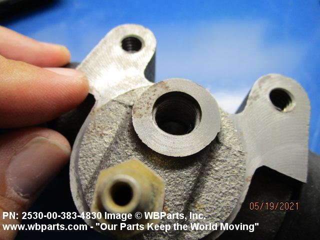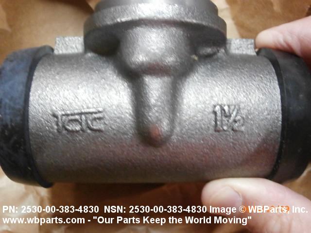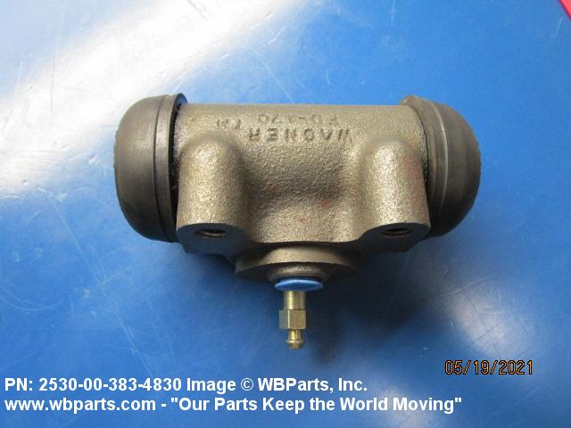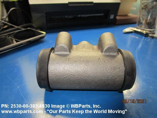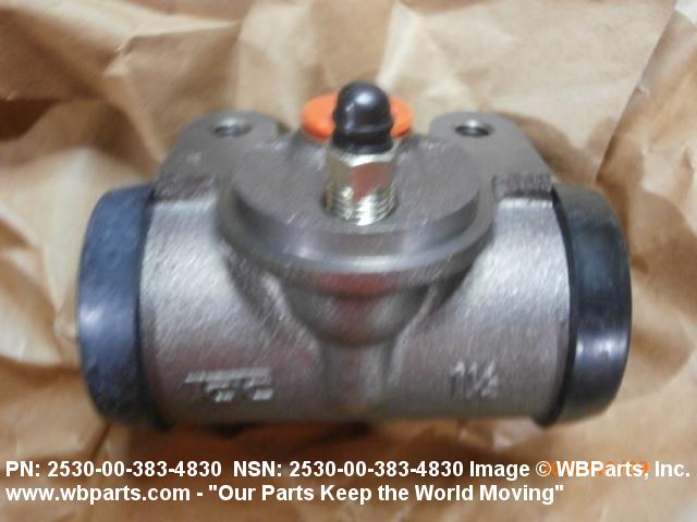 2530-00-383-4830 A device consisting of a CYLINDER, HYDRAULIC BRAKE, WHEEL with a piston(s) and other component parts which is mounted to the back plate of a wheel. It uses the flow and pressure of a fluid to create the linear motion required to operate the brake shoes of a hydraulic brake system.20216300032Aircraft Wheel and Brake Systems25300060Vehicular Brake, Steering, Axle, Wheel, and Track Components