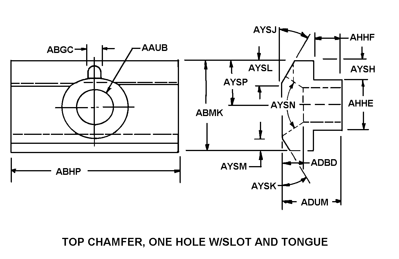 | STYLE DESIGNATOR | 4 TOP CHAMFER, ONE HOLE AND TONGUE |