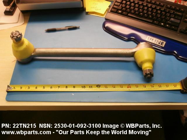 2530-01-092-3100 An item designed to form a connection and to transmit linear motion, either directly or indirectly, between the steering gear arm and the steering knuckle arms of a vehicle. See also TIE ROD, STEERING.20220300014Deck Machinery25300060Vehicular Brake, Steering, Axle, Wheel, and Track Components