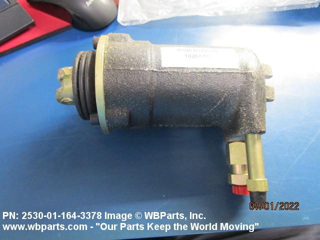 2530-01-164-3378 A device consisting of a CYLINDER, HYDRAULIC BRAKE, WHEEL with a piston(s) and other component parts which is mounted to the back plate of a wheel. It uses the flow and pressure of a fluid to create the linear motion required to operate the brake shoes of a hydraulic brake system.20216300032Aircraft Wheel and Brake Systems25300060Vehicular Brake, Steering, Axle, Wheel, and Track Components