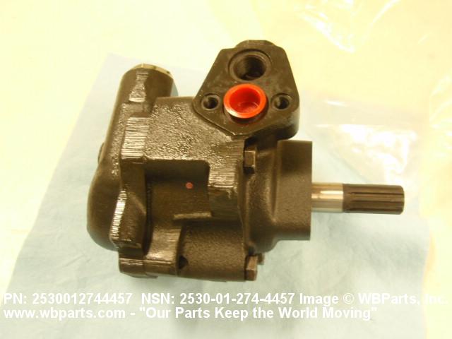 2530-01-274-4457 An item designed to provide the source of hydraulic fluid from the reservoir and transmit it under pressure through the pressure line to the steering b ox. It may or may not include an integral fluid reservoir.