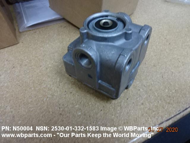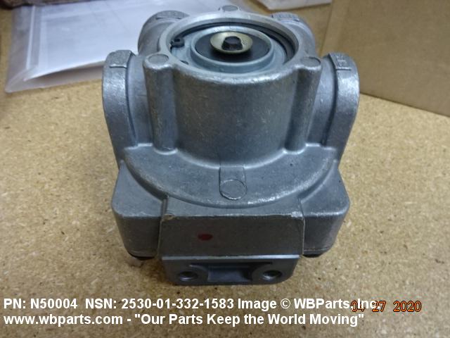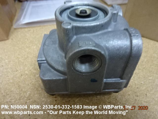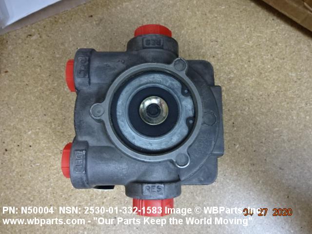 2530-01-332-1583 A valve specifically designed for installation in an air brake system. It is used on trailers, long wheel base vehicles, as well as multiple rear axle vehicles. It serves to speed and synchronize the application and release of air operated service or parking brakes. It may include emergency features for trailer application.