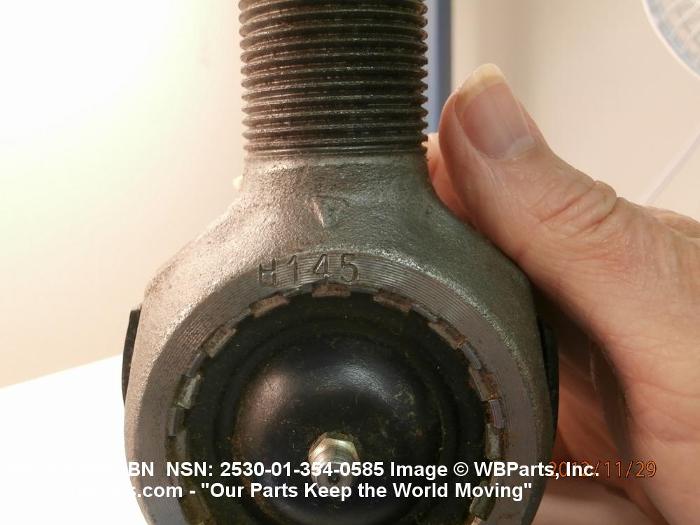 2530-01-354-0585 A metal device designed to provide a swiveling connection between a tie rod and arm of an automotive steering mechanism.