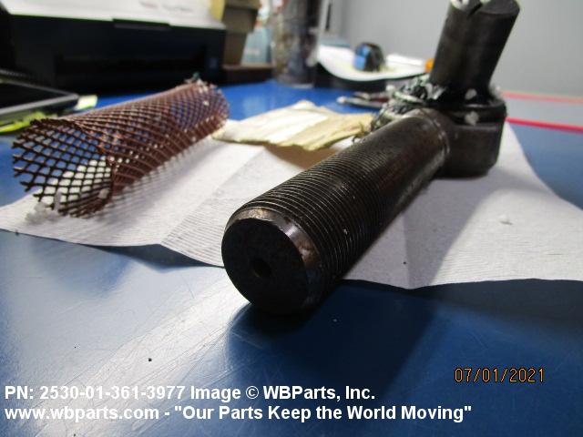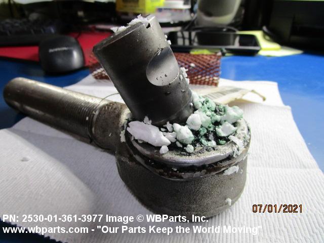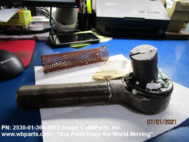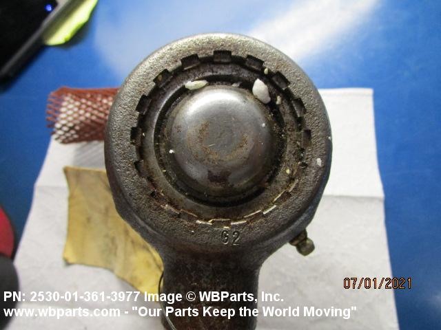 2530-01-361-3977 A metal device designed to provide a swiveling connection between a tie rod and arm of an automotive steering mechanism.