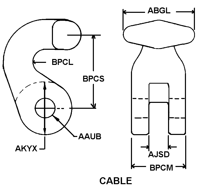 | LENGTH FROM HOLE CENTER TO HOOK HEAD CENTER | 3.938 INCHES MINIMUM AND 4.125 INCHES MAXIMUM |