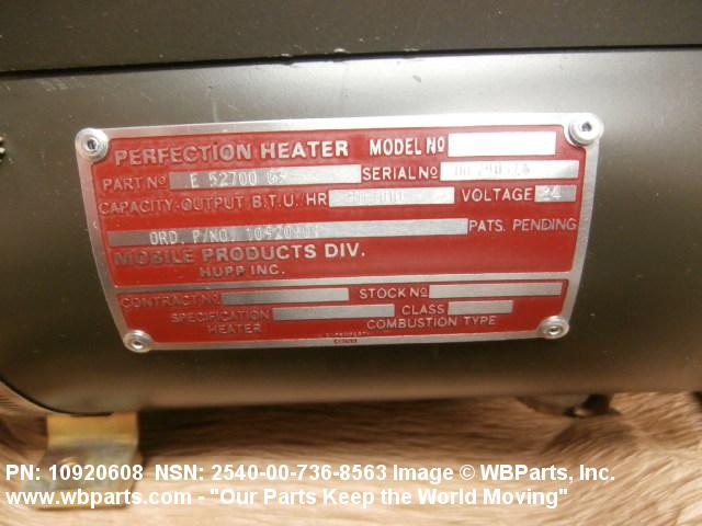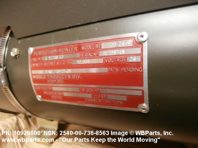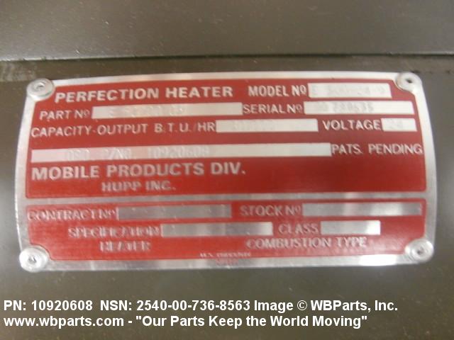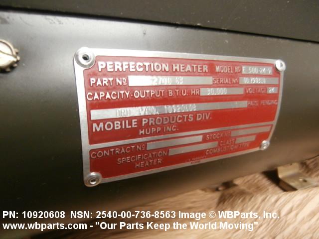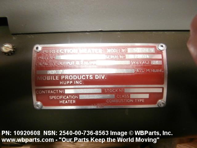 2540-00-736-8563 A device designed to heat the interior of a vehicle by utilizing the heat from the engine coolant system or a liquid fuel type burner. Circulation of the heated air is achieved by use of a blower or fan which may or may not be an integral part of the heating unit. Excludes HEATER, AIRCRAFT, and railway heaters.